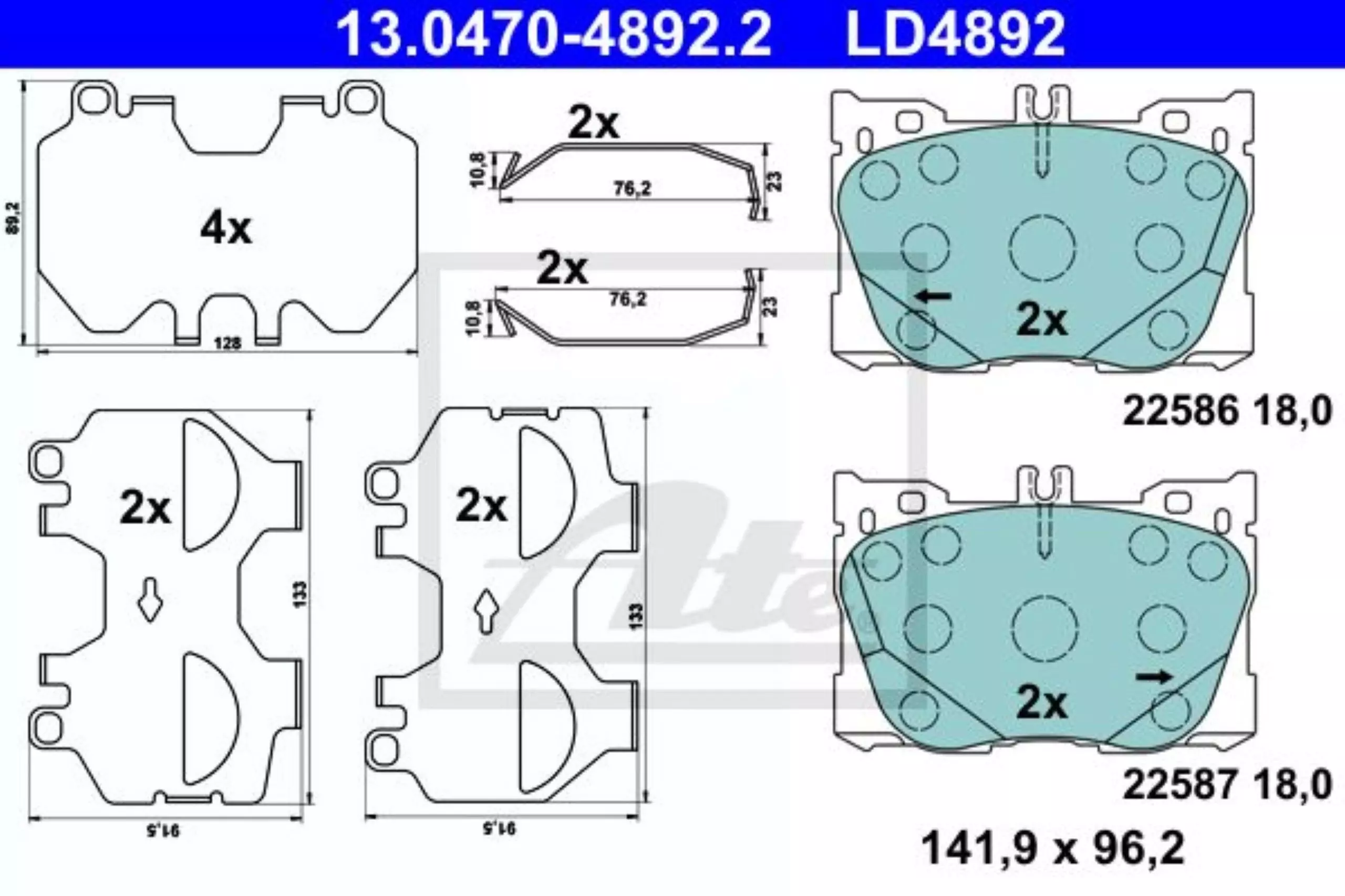 Klocki hamulcowe komplet ceramiczny przód ATE 13.0470-4892.2