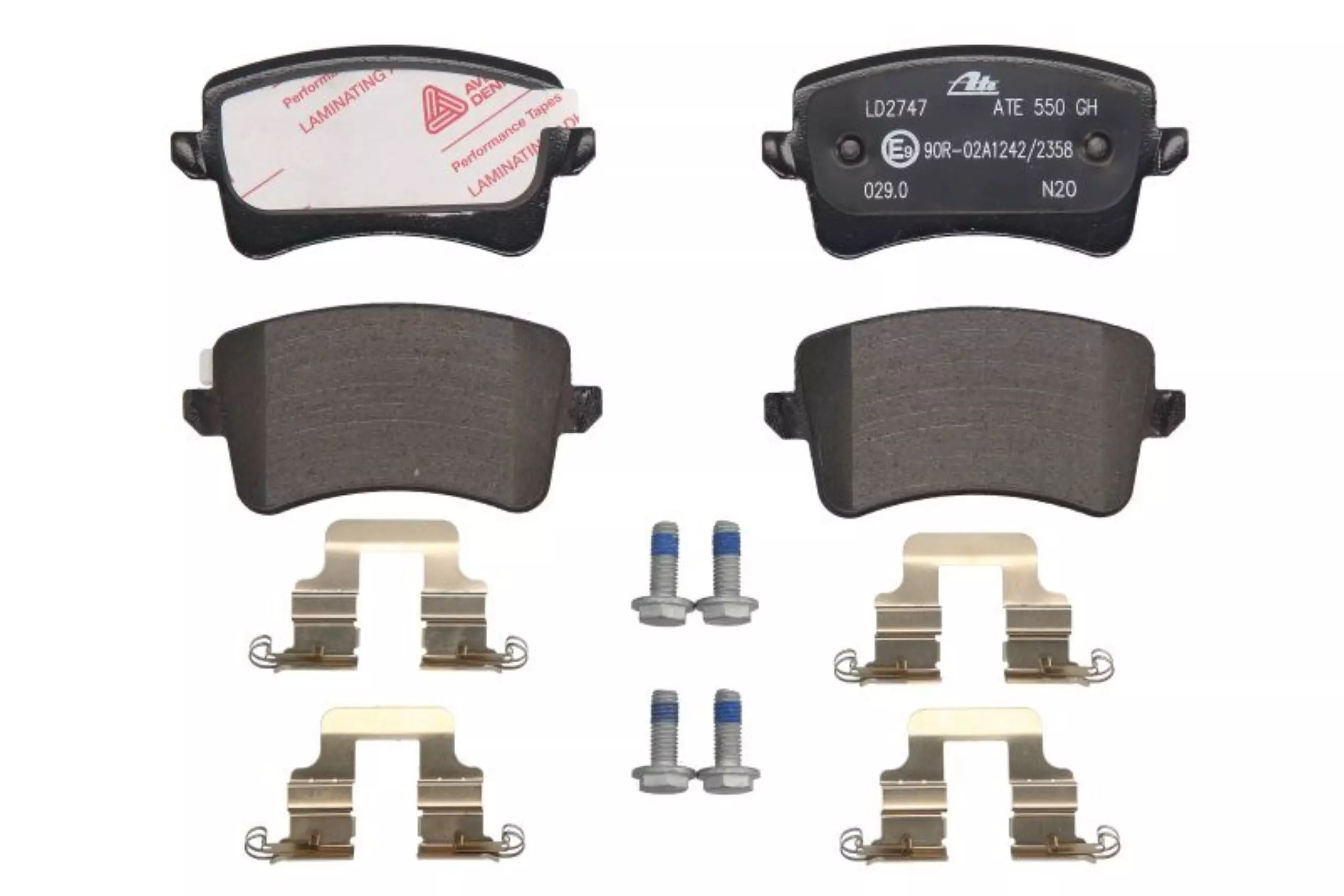 Klocki hamulcowe komplet ceramiczny tył (z dodatkami, ze śrubami prowadzącymi zacisku hamulcowego) ATE 13.0470-2747.2