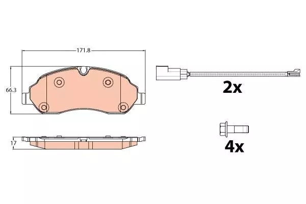 Klocki hamulcowe komplet przód (z dodatkami; ze śrubami prowadzącymi zacisku hamulcowego) TRW GDB2117