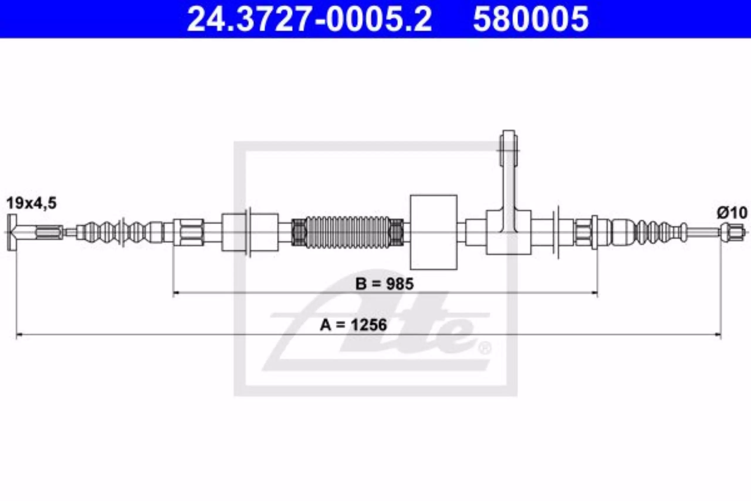 Linka hamulca ręcznego tył lewy 1256mm ATE 24.3727-0005.2
