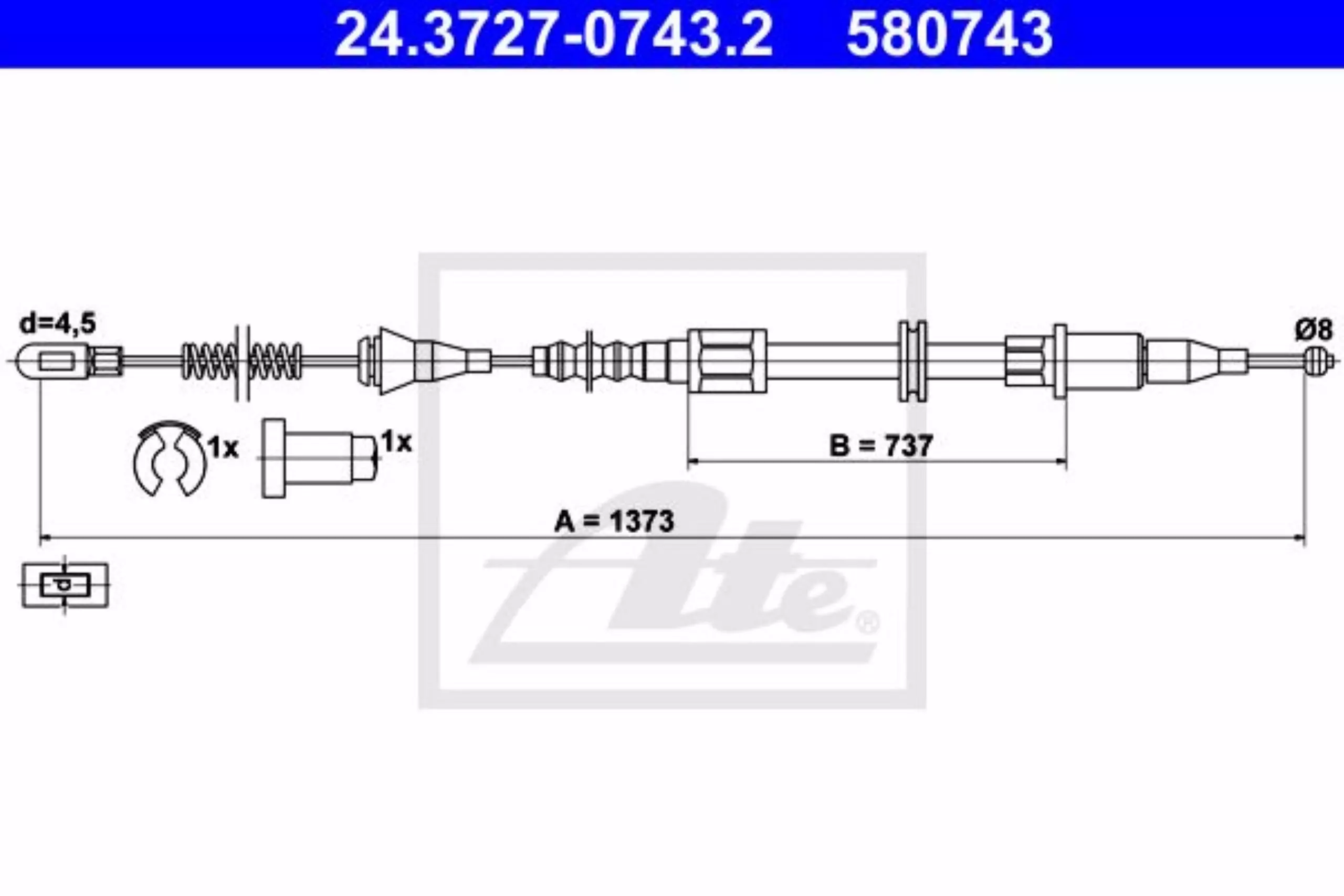 Linka hamulca ręcznego tył lewy 1373mm ATE 24.3727-0743.2