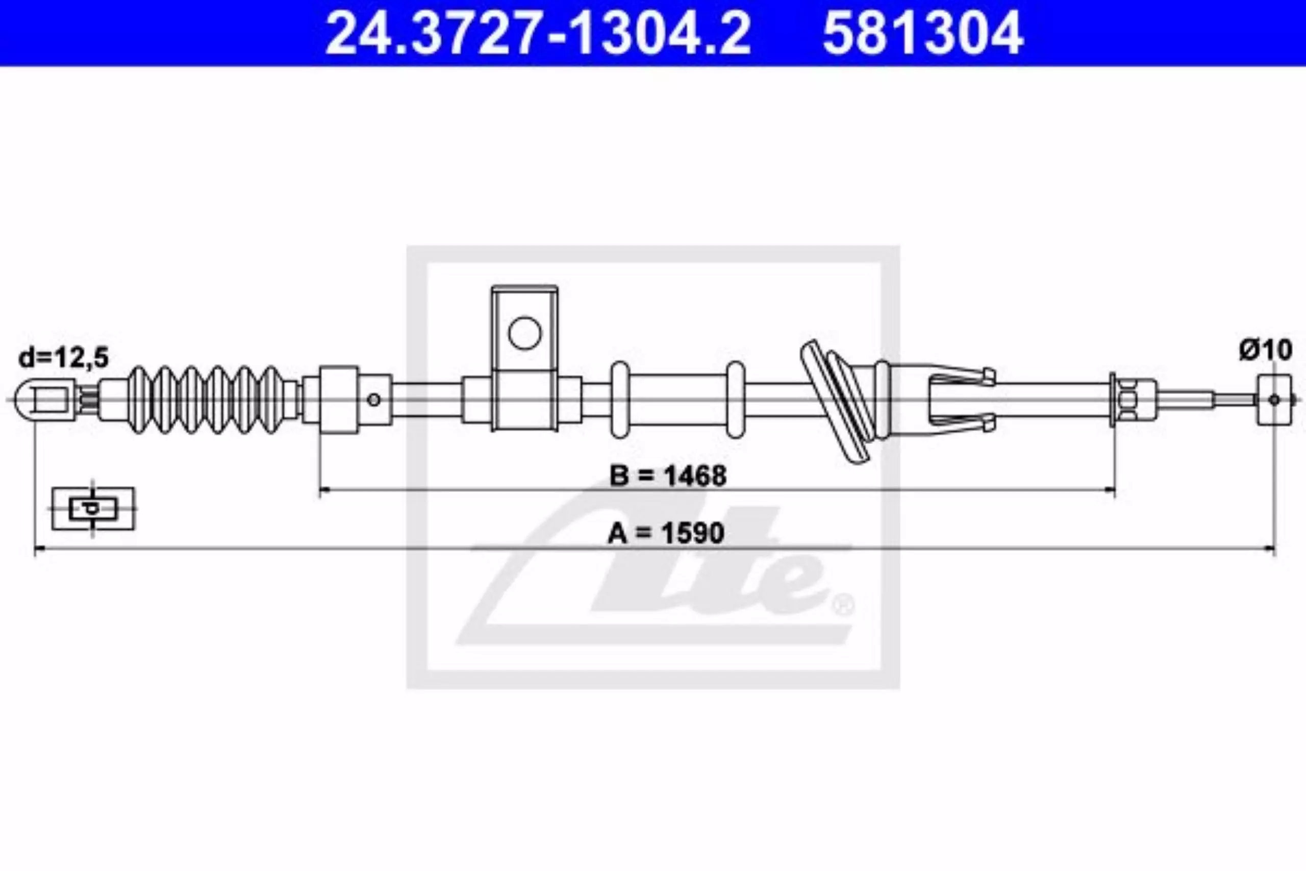 Linka hamulca ręcznego tył lewy 1590mm ATE 24.3727-1304.2