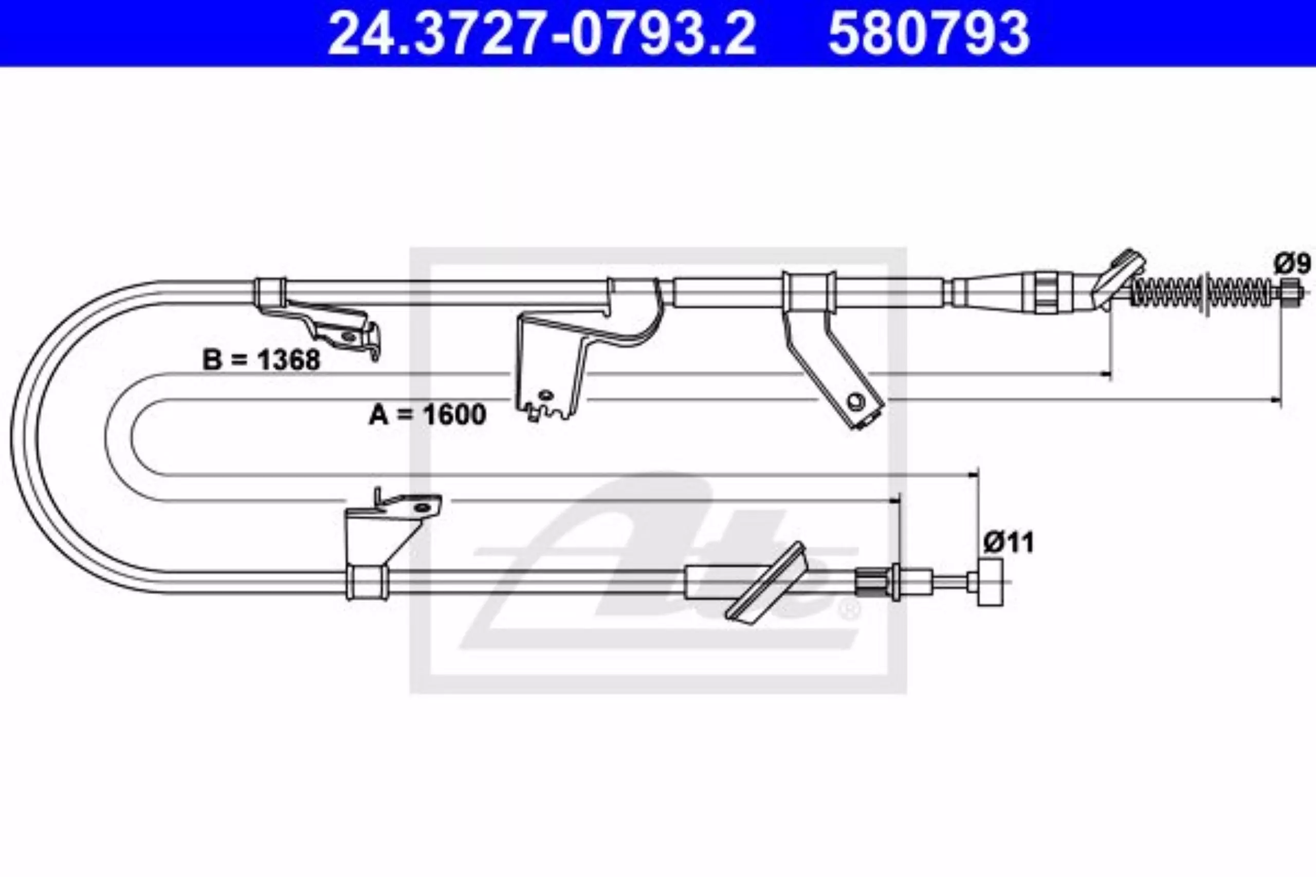 Linka hamulca ręcznego tył lewy 1600mm ATE 24.3727-0793.2