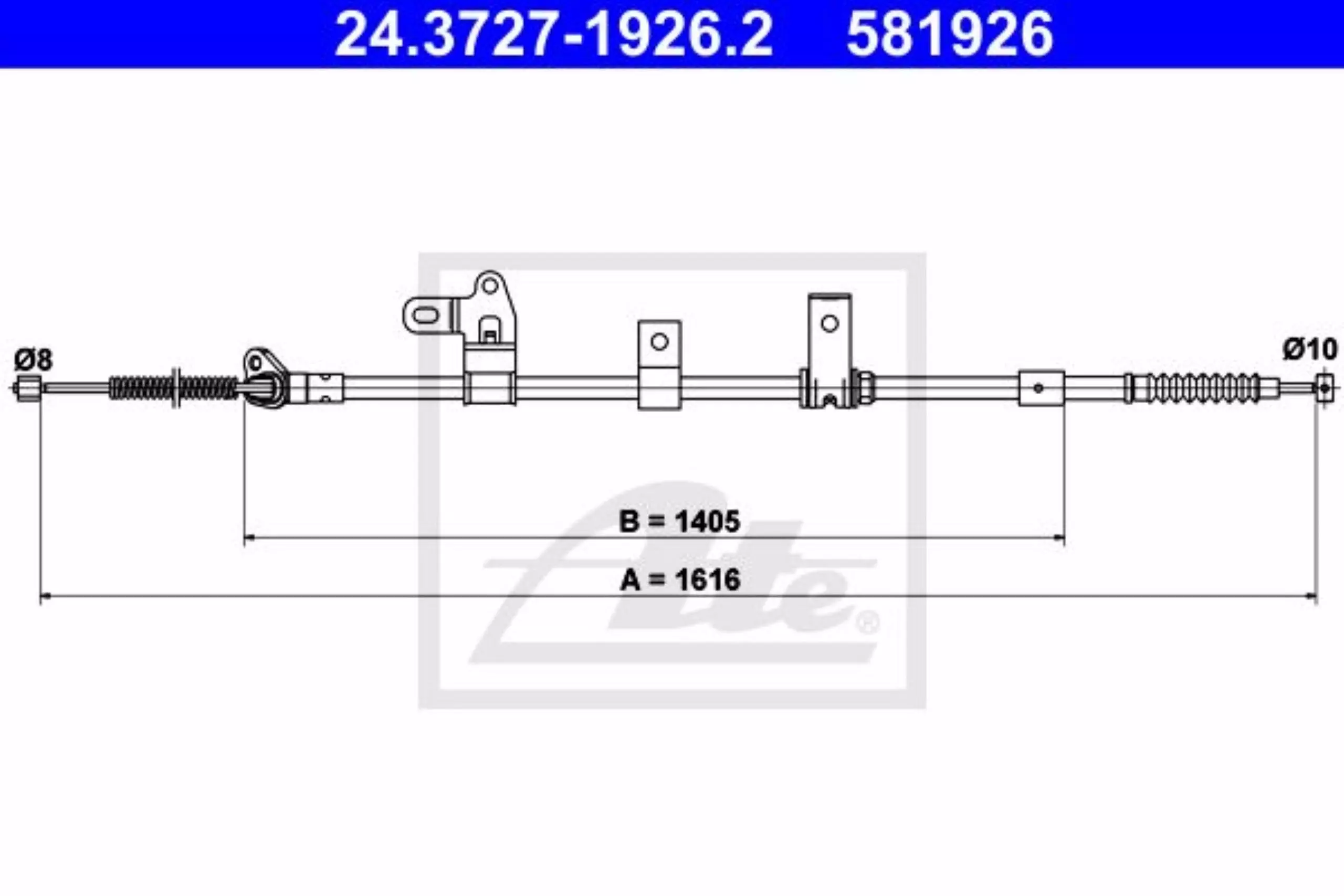 Linka hamulca ręcznego tył lewy 1616mm ATE 24.3727-1926.2
