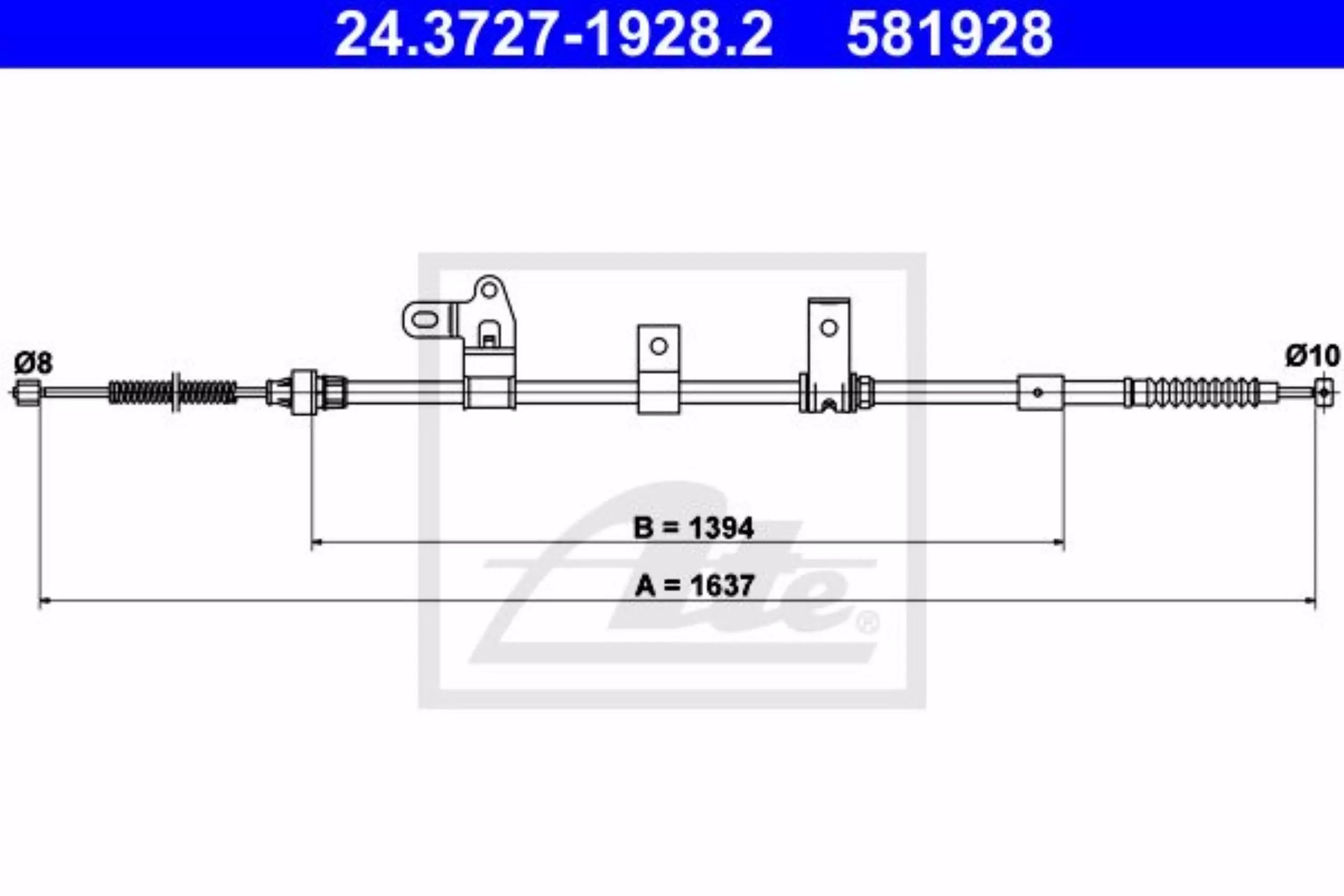 Linka hamulca ręcznego tył lewy 1637mm ATE 24.3727-1928.2