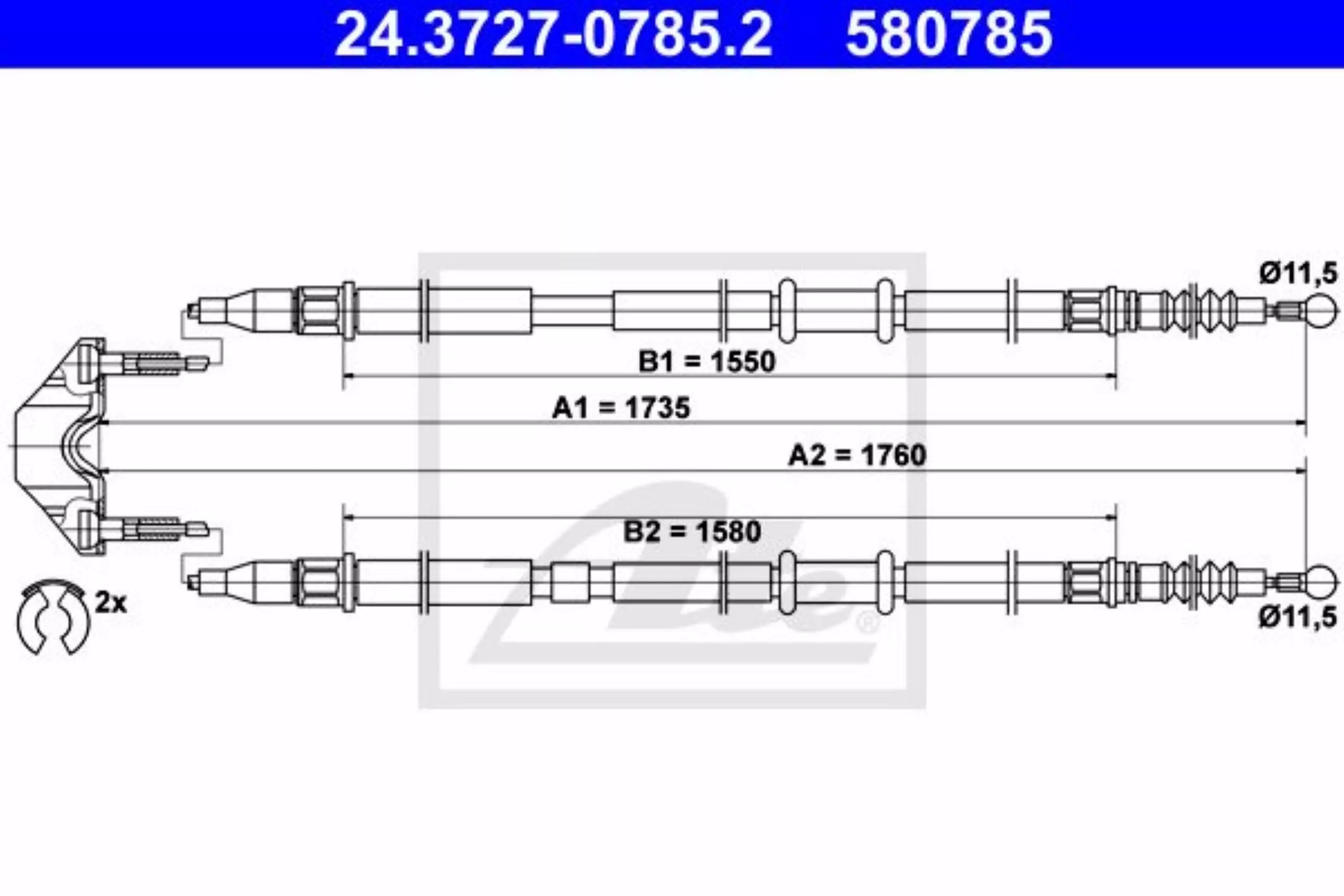 Linka hamulca ręcznego tył lewy/prawy 1735mm/1760mm ATE 24.3727-0785.2