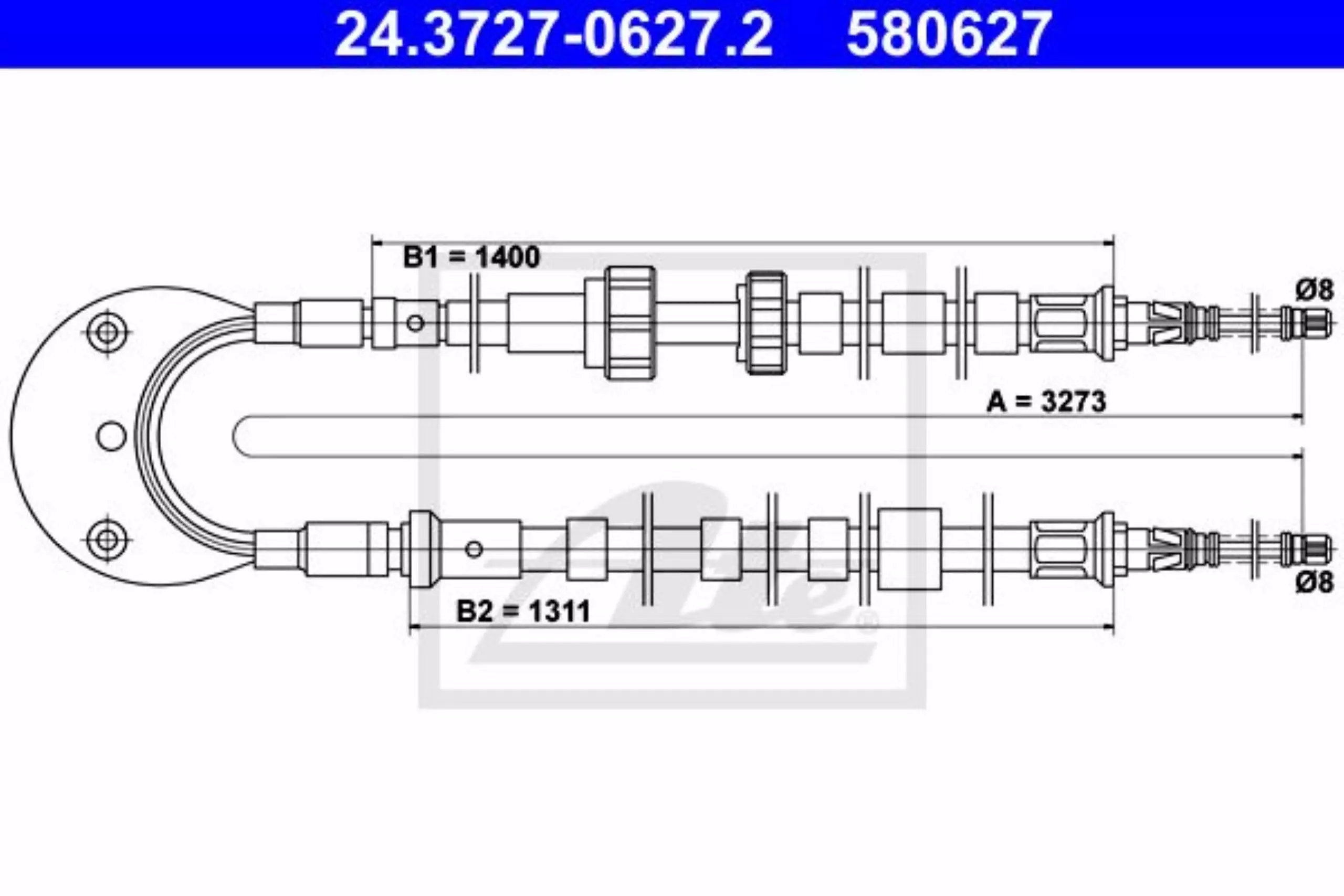 Linka hamulca ręcznego tył lewy/prawy 3273mm ATE 24.3727-0627.2
