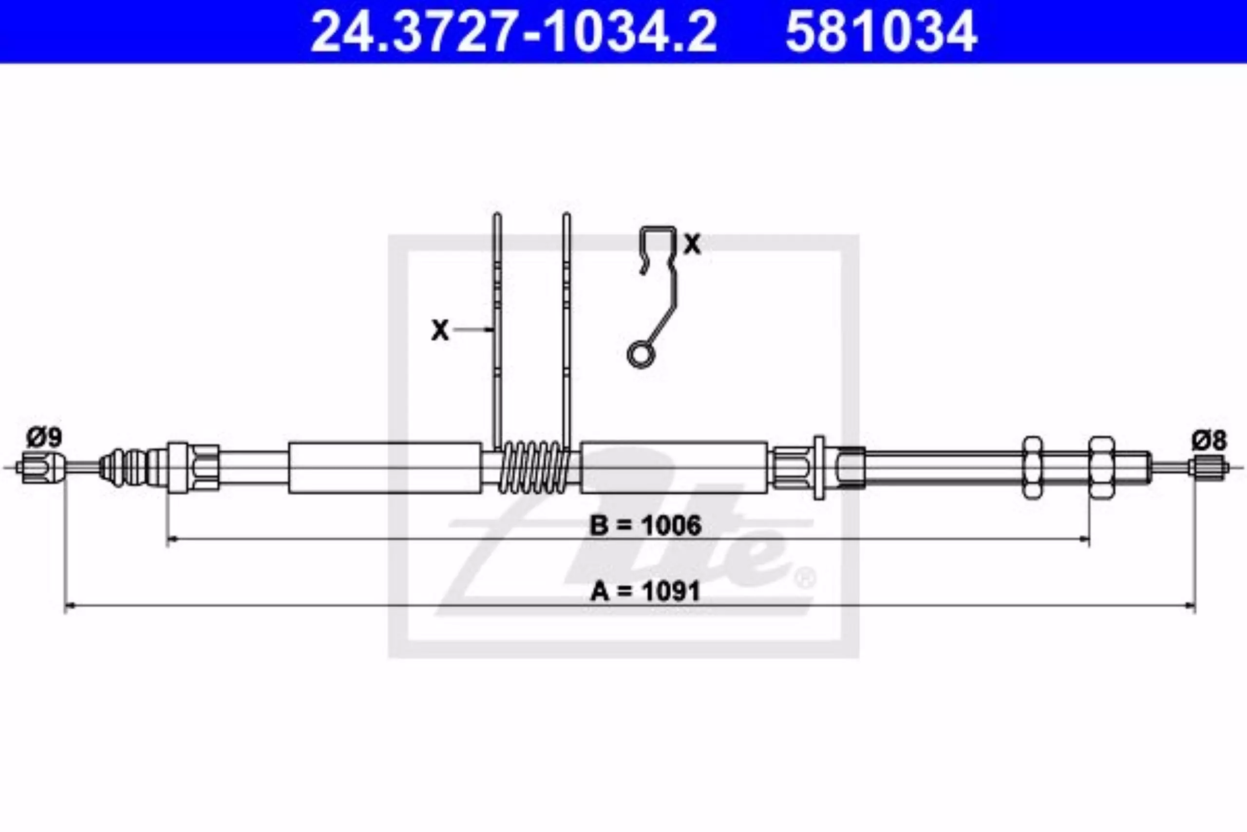 Linka hamulca ręcznego tył prawy 1091mm ATE 24.3727-1034.2
