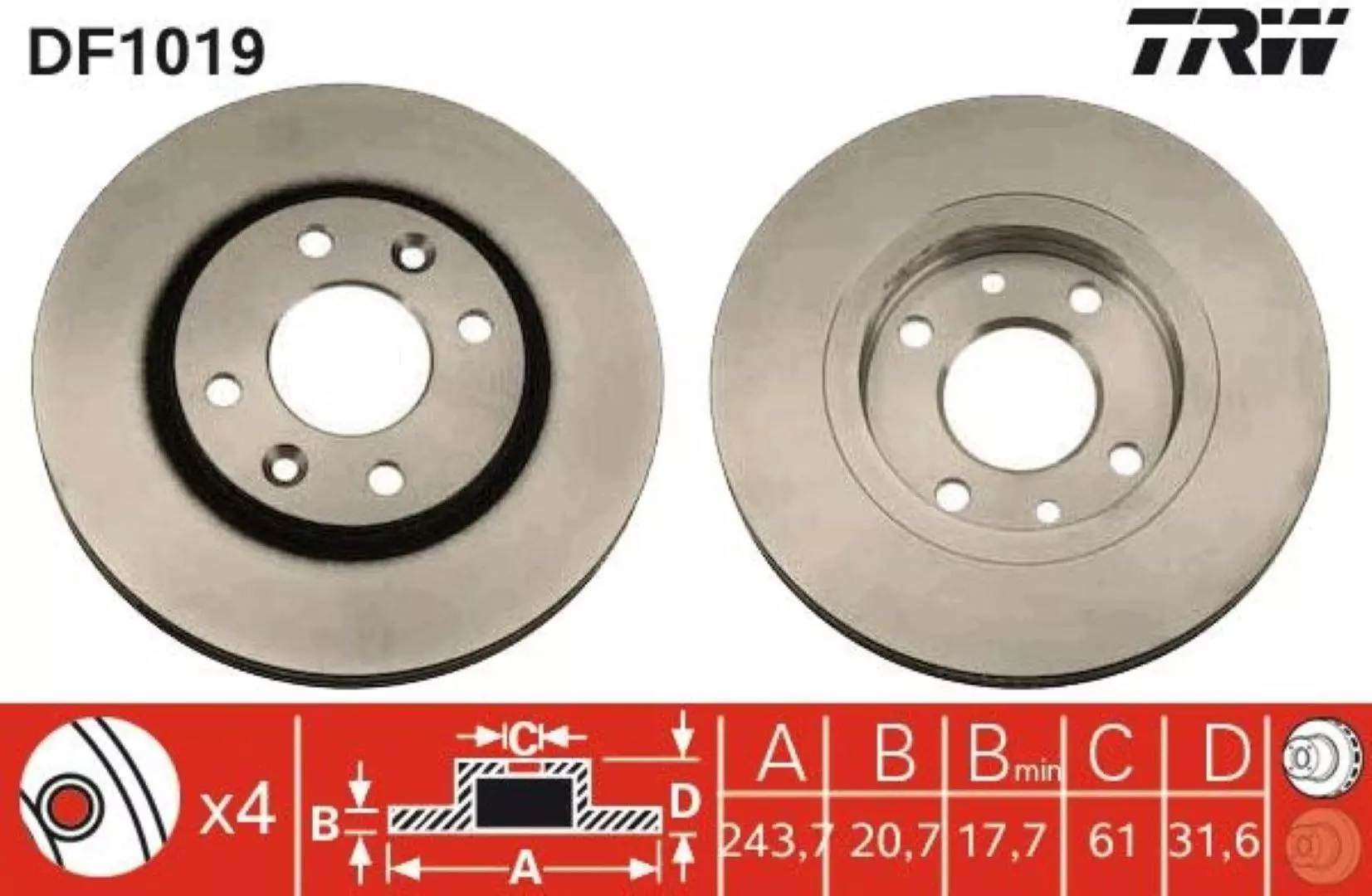 Tarcza hamulcowa przód lewa/prawa TRW DF1019