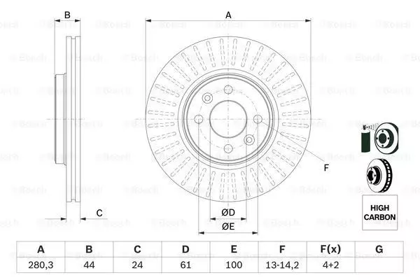 Tarcza hamulcowa przód lewa/prawa (wysoko nawęglany) Bosch 986478590