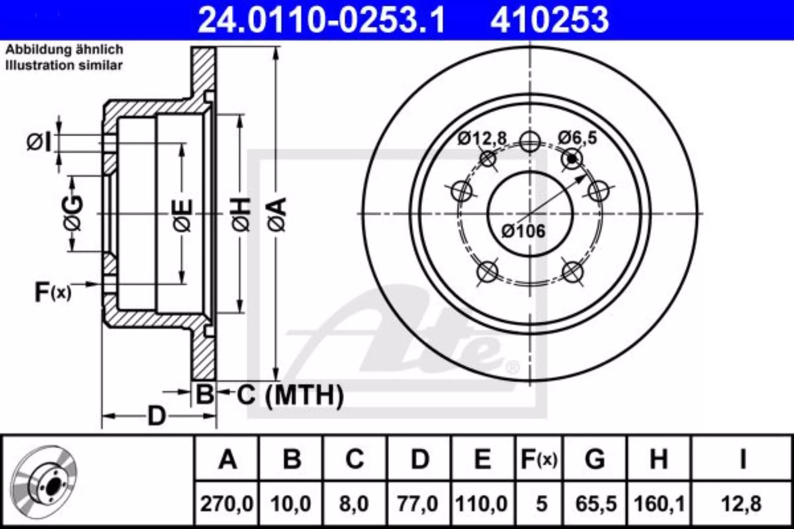 Tarcza hamulcowa tył ATE 24.0110-0253.1