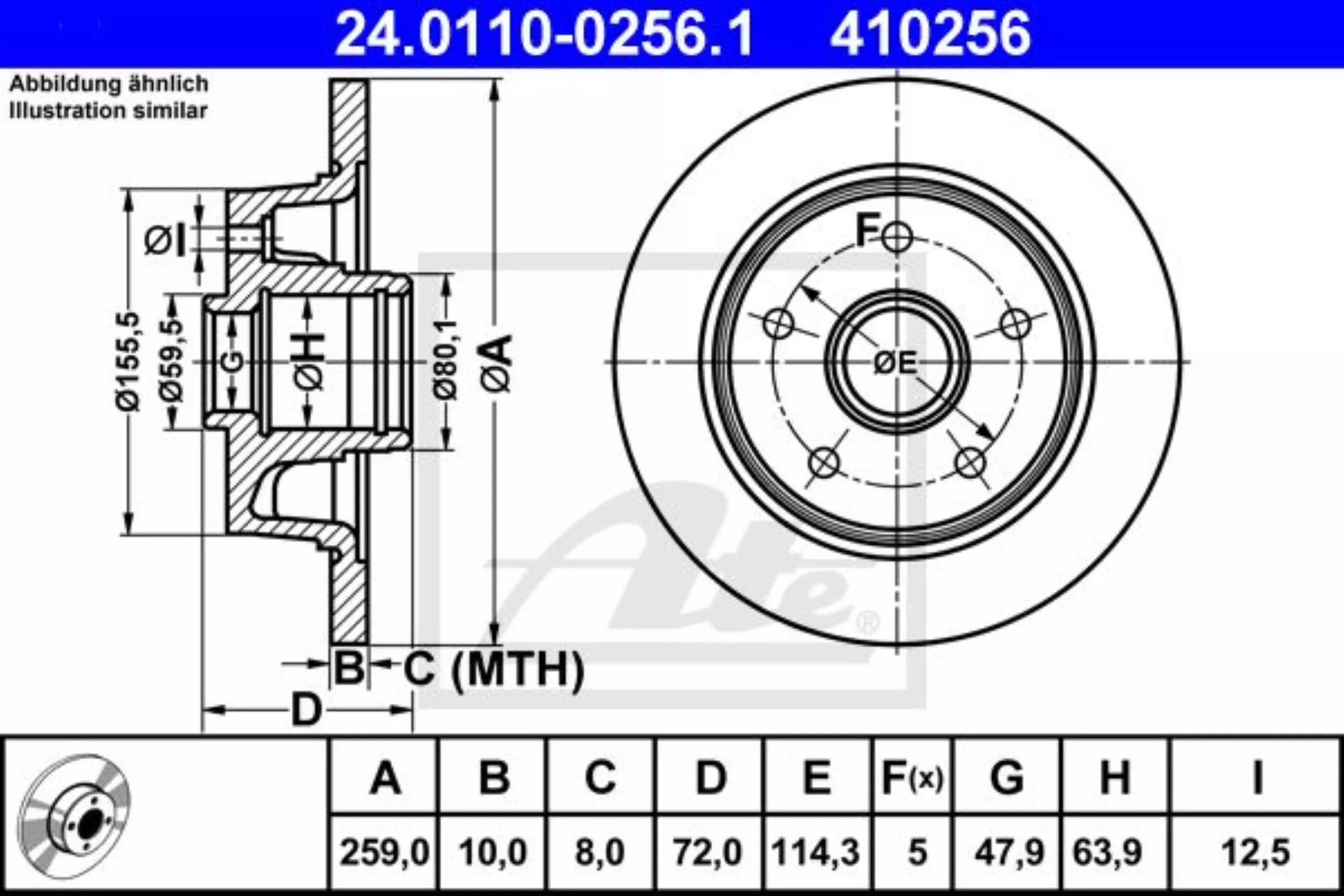 Tarcza hamulcowa tył ATE 24.0110-0256.1