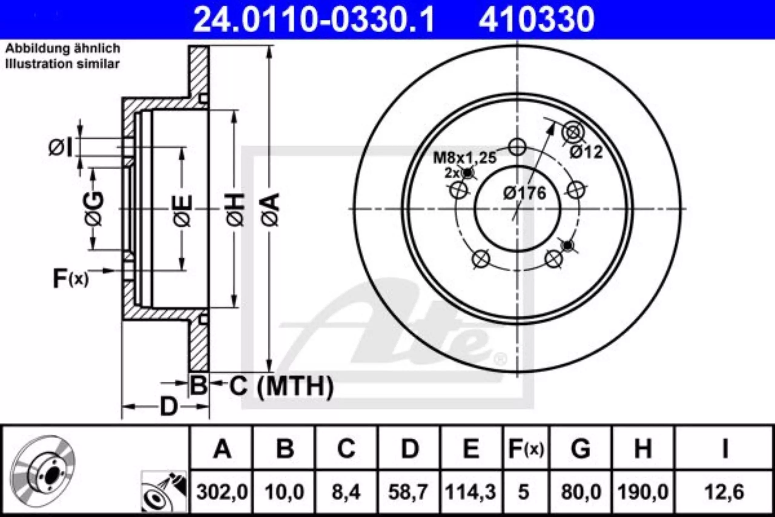 Tarcza hamulcowa tył ATE 24.0110-0330.1