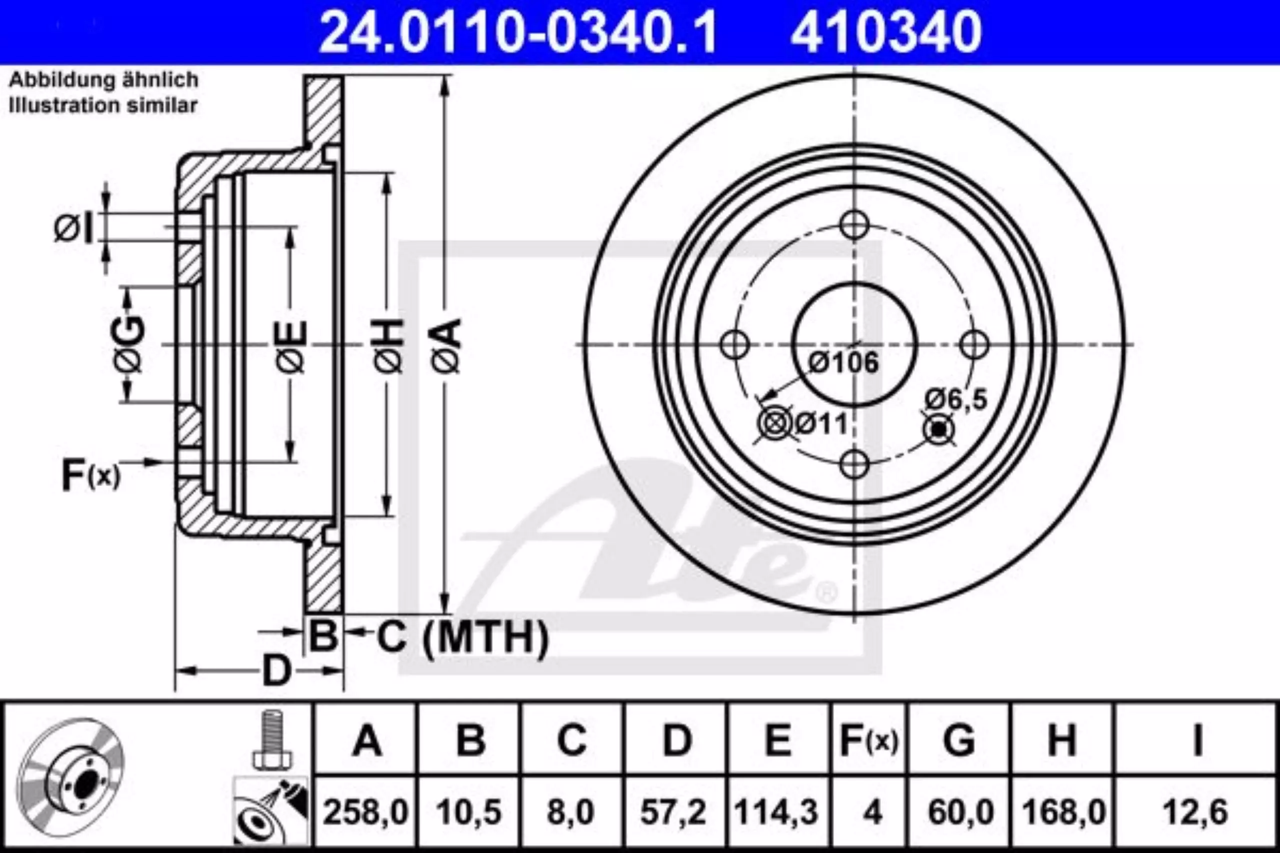 Tarcza hamulcowa tył ATE 24.0110-0340.1